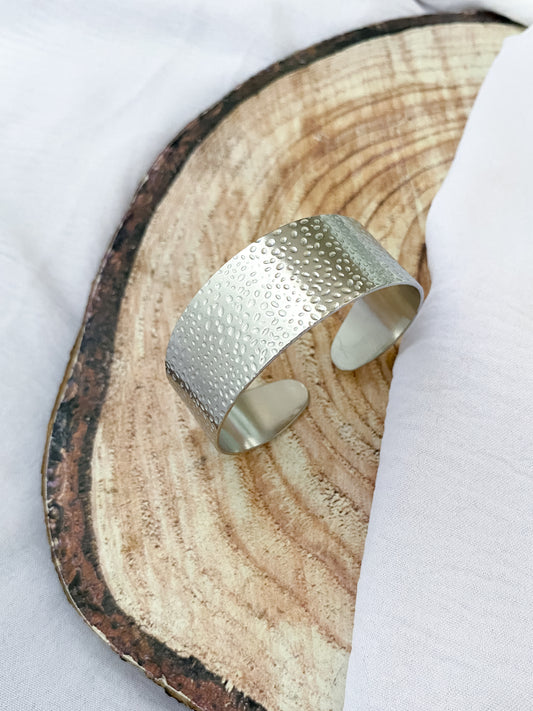 Hammered Adjustable Cuff Bangle - Silver
